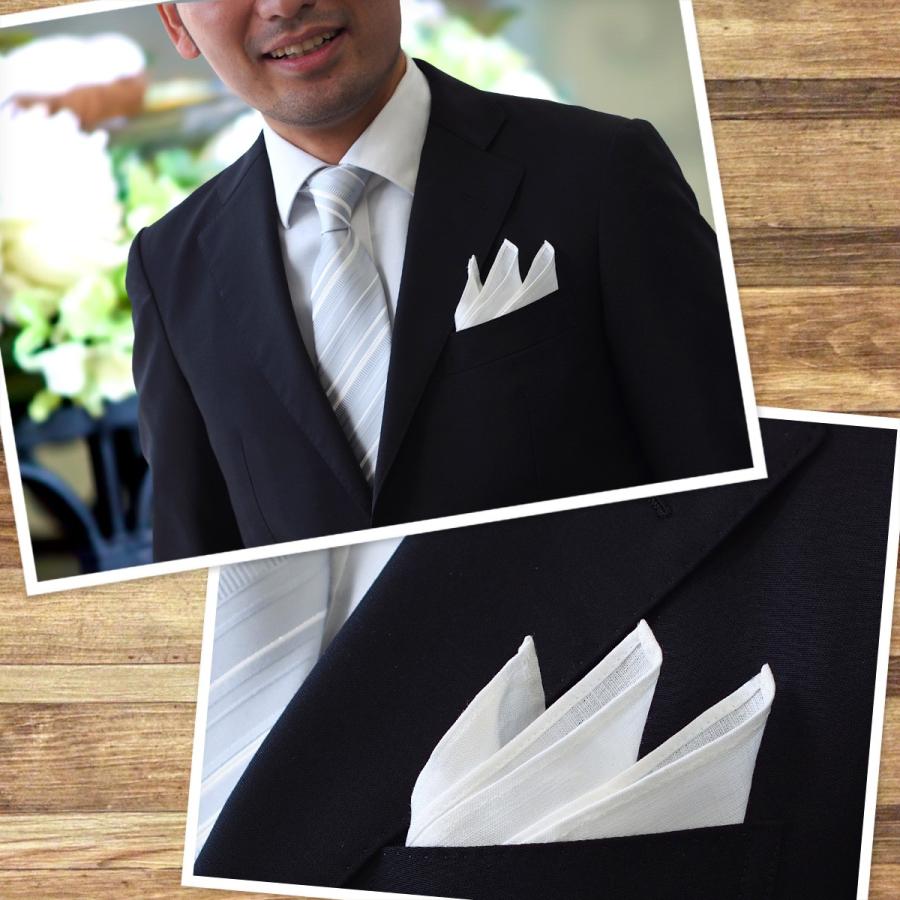 結婚式やパーティーなどの装いにはもちろん、ビジネスやカジュアルなディナーなど、あらゆるシーンで万能にお使いいただける定番のポケットチーフです。