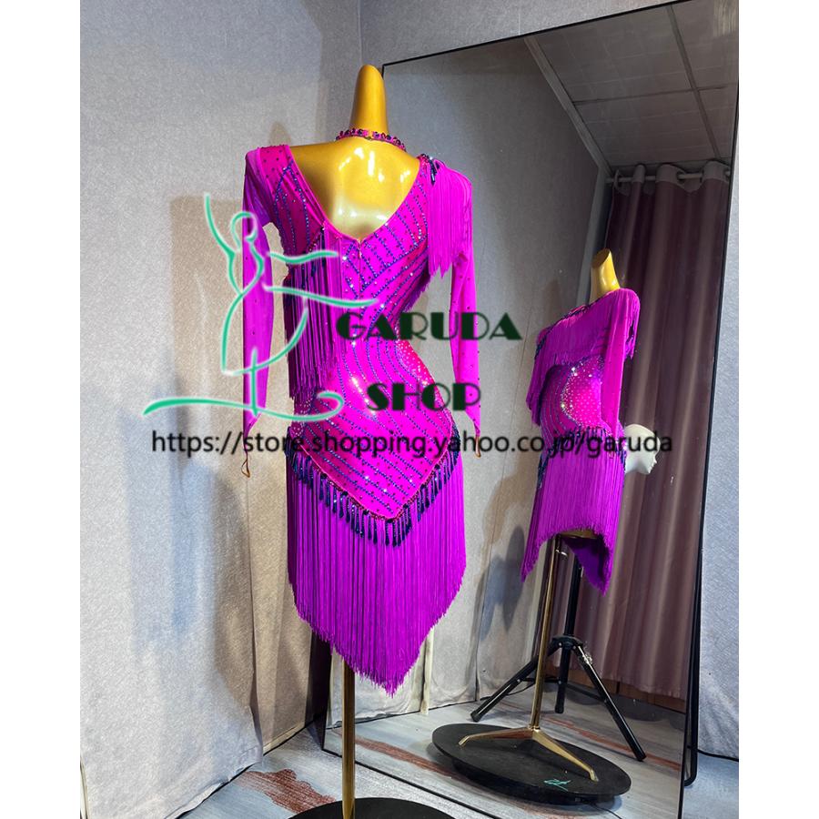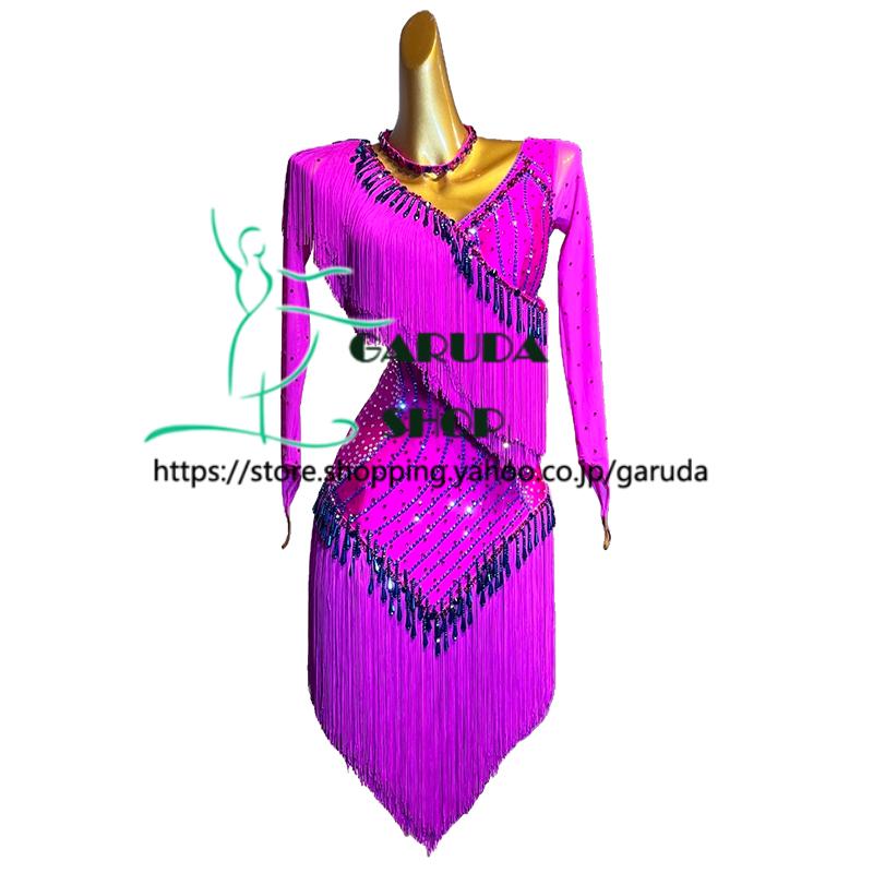 ストレッチ素材で動きやすく、発表会、競技などにおすすめのレディースモダン社交ダンス衣装です。