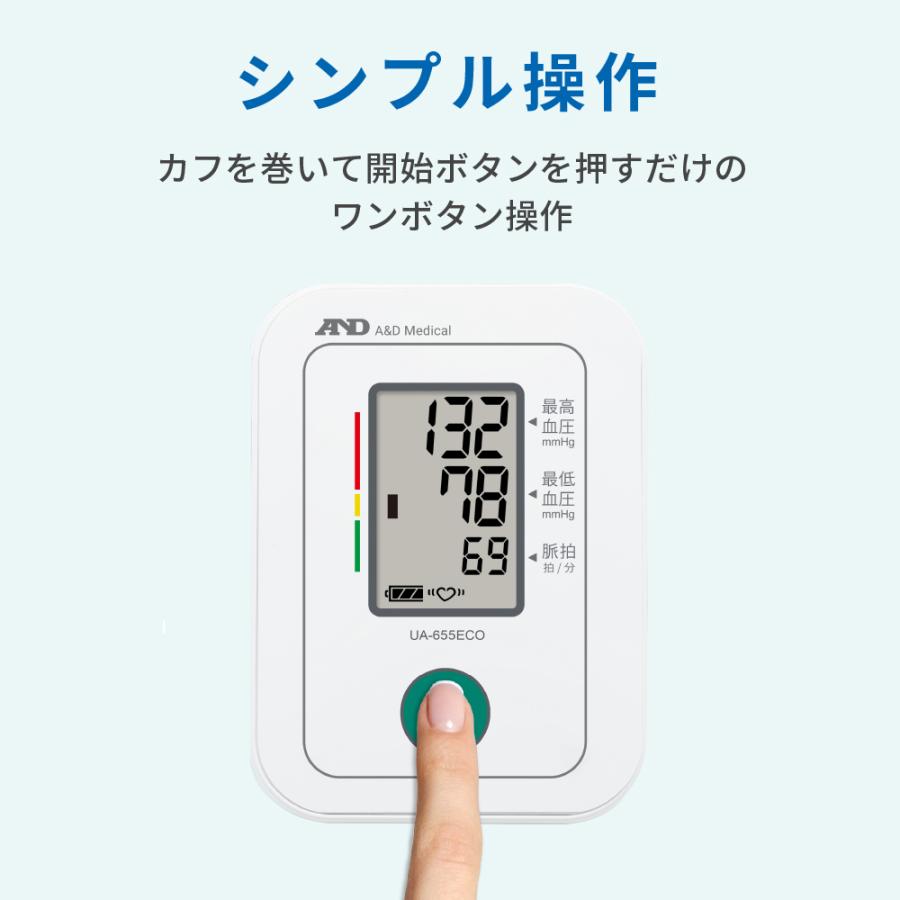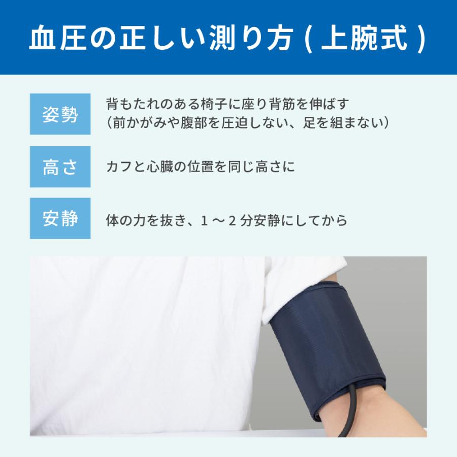 シンプル、簡単測定。カフを巻いてスイッチを押すだけで測定を開始します。