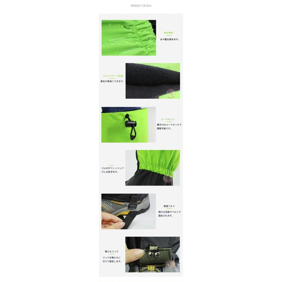 靴の足首まわりをカバーして雪、雨、砂、小石など異物が靴の中へ侵入するのを防ぎます。