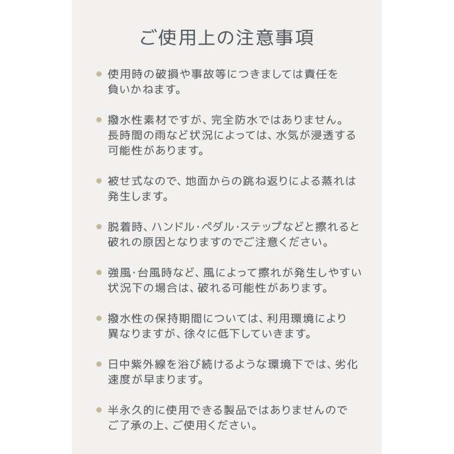・紫外線カット加工済で、駐輪時の日差しによる塗装や樹脂パーツ劣化の悩みを解決。