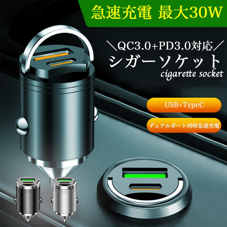 シガーソケット USB 2連 2ポート type-c PD 12V 24V