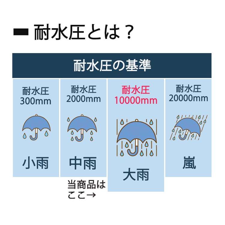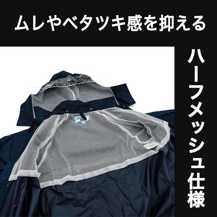 サイクルモードレインコート・快適で安全性でも配慮した通学用レインウェア・高い耐水圧で強力防水。耐水圧10,000mm以上・フードは着脱可能・フードのツバ部分は透明で視野が広い・ファスナーと前立てで雨を防ぐ・撥水加工・ベンチレーション機能で換気でき通気性良好・背中側の反射テープが光って夜道の走行も安全・袖口は内側ゴムで、雨をシャットアウト・半メッシュ裏地・便利な収納袋付き・豊富なサイズ展開。100〜115B(身長145~185cm)まで