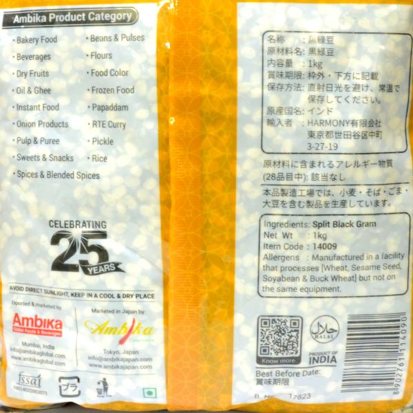 ホールタイプのウラッドダールはしっかりとした皮付きで、調理するのに時間がかかる豆ですが、こちらは比較的調理しやすい半割りタイプ。皮の食感と食べ応え、コクも楽しめ、調理時間を短縮できます。黒い皮にはポリフェノールなどの栄養素も含まれ、見た目・味わい共にどことなくあずきに似た豆です。「ダールマッカニー」カレーなどに使用されるほか、スープや煮込み料理などにも。