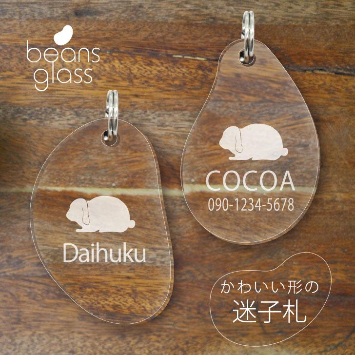 おしゃれでかわいい 軽く 小さい 透明な迷子札【商品の特徴】ロップイヤーうさぎのシルエットが可愛い、お豆型のアクリル製迷子札。軽量で丈夫、名前を彫刻します。シリコンリングでアンブレラマーカーにも。S/M/Lの3サイズ展開。【商品のスペック】サイズ:S(20mm), M(25mm), L(30mm) ※タテの長さ。幅は形による材質:アクリル【キーワード】迷子札 うさぎ ロップイヤー ペット グッズ アクリル 名前 アンブレラマーカー 名札 かわいい 軽量