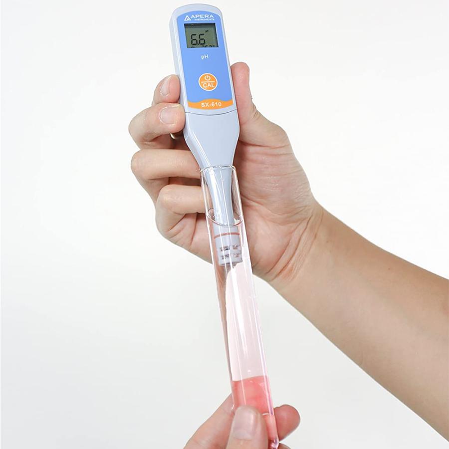 ●細径電極(直径10mm)なので試験管やフラスコなど口の狭い容器でのpH測定に最適。