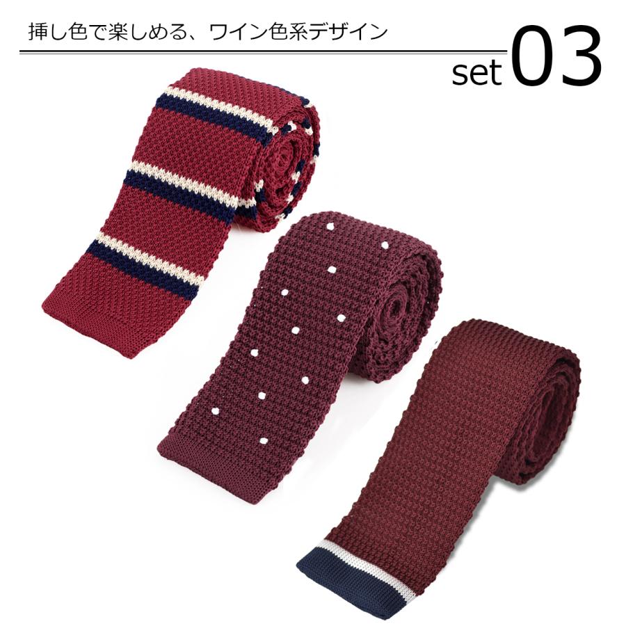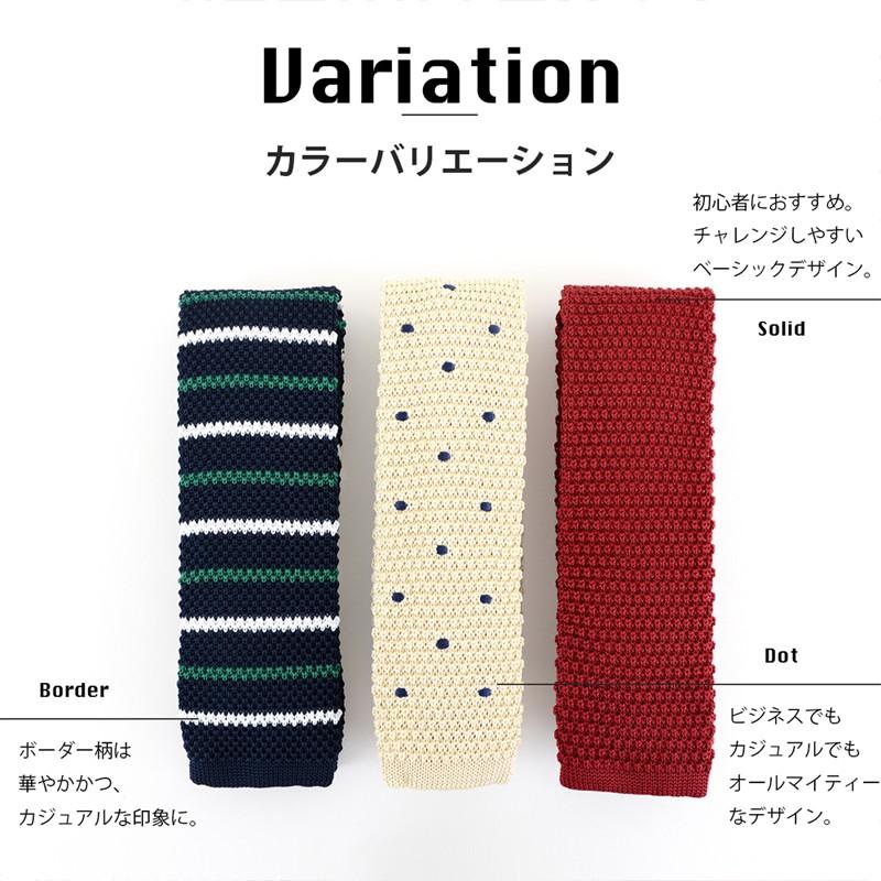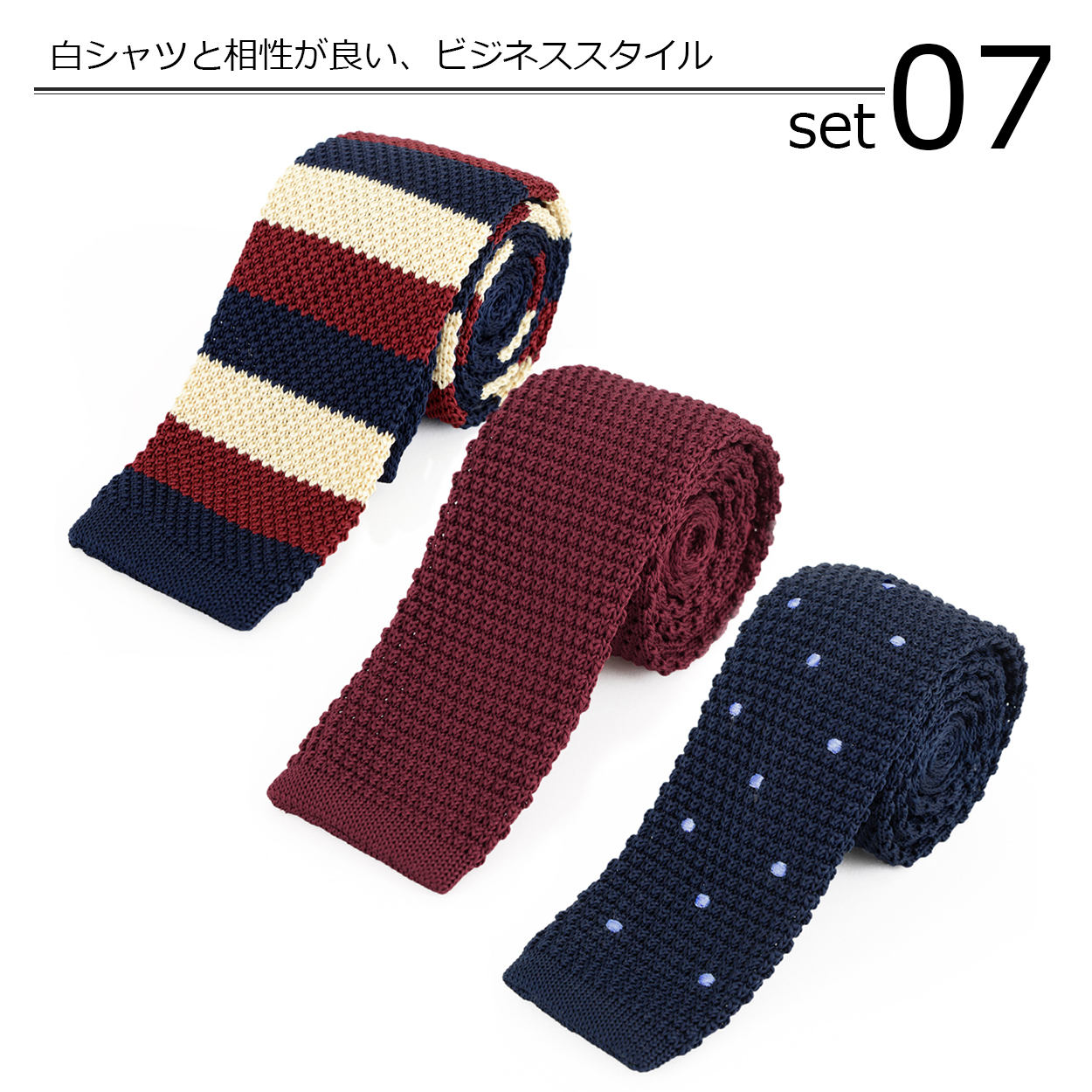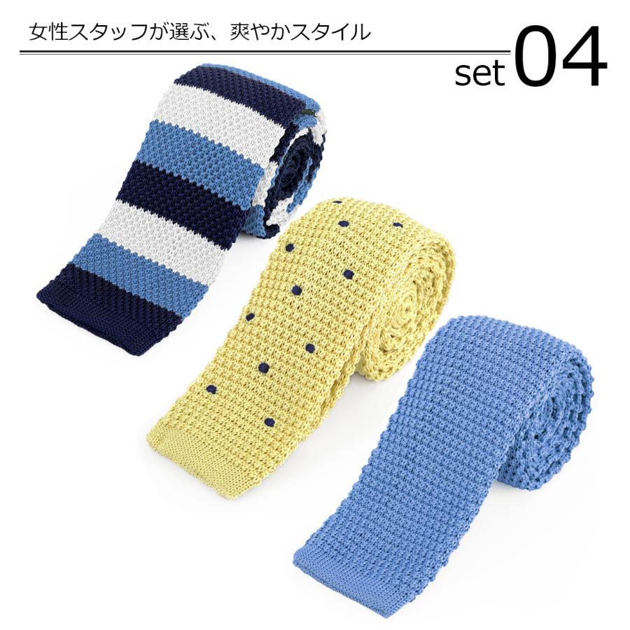 ニットタイクールビズ 無地 ドット ボーダー 鹿の子編み ニット タイ 3本セット●COOL BIZスタイルにニットタイ 無地・ドット・ボーダー●洗濯機で洗えます●素材:ポリエステル100% ●サイズ:長さ:140.0cm スクエアエンド幅:6.0cm ●生産国:中国 ●その他:※こちらの商品は、輸入品につき、カラー、サイズ等若干異なる場合がございます。ご了承ください。