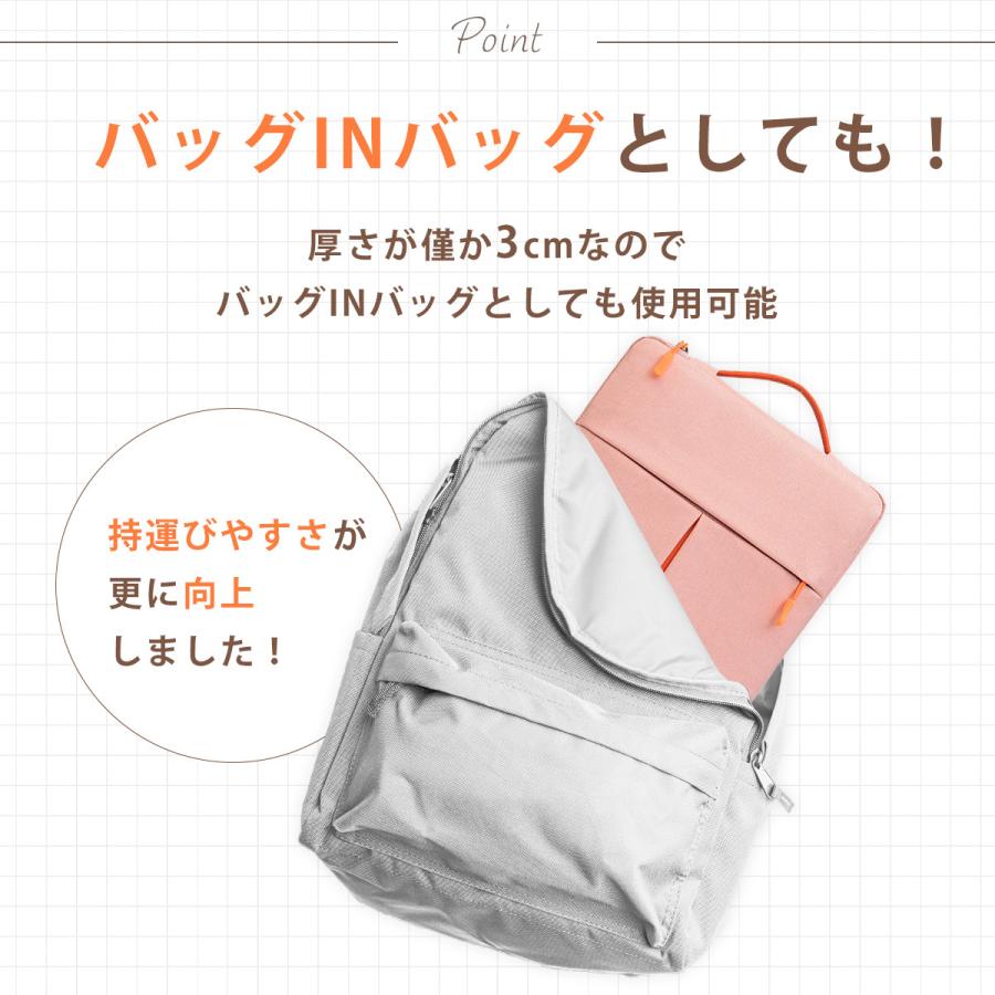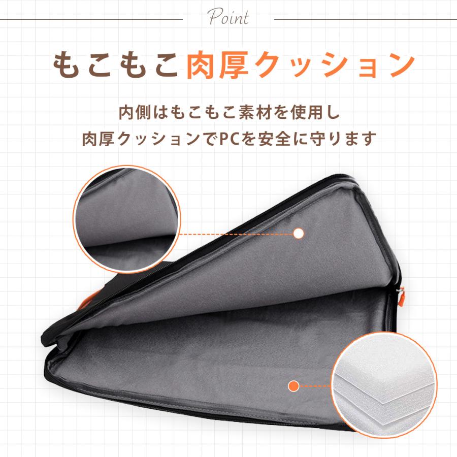 パソコンを入れるメインのポケットは裏起毛になっており、ふわふわで傷を防ぎ、中への衝撃を吸収して軽減してくれます