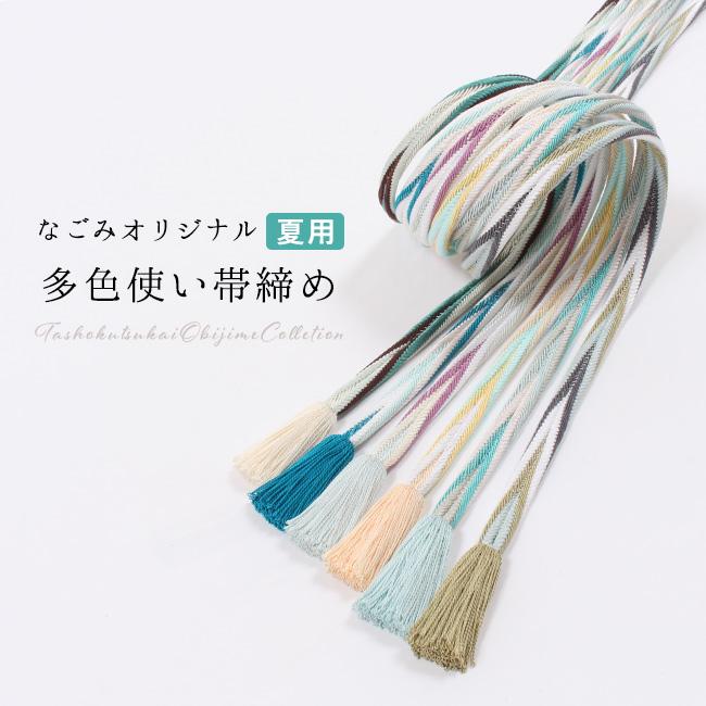 こちらは、なごみオリジナル、別注カラー、レース組を使用した単(ひとえ)、夏バージョン。 店長ケイコが厳選した4色を使用した、なごみオリジナル帯締めです。