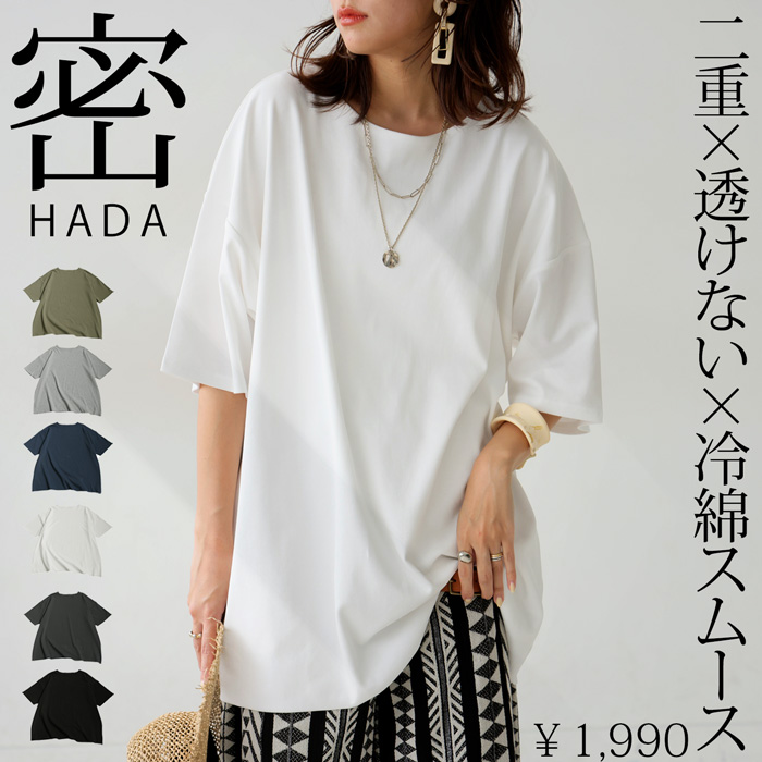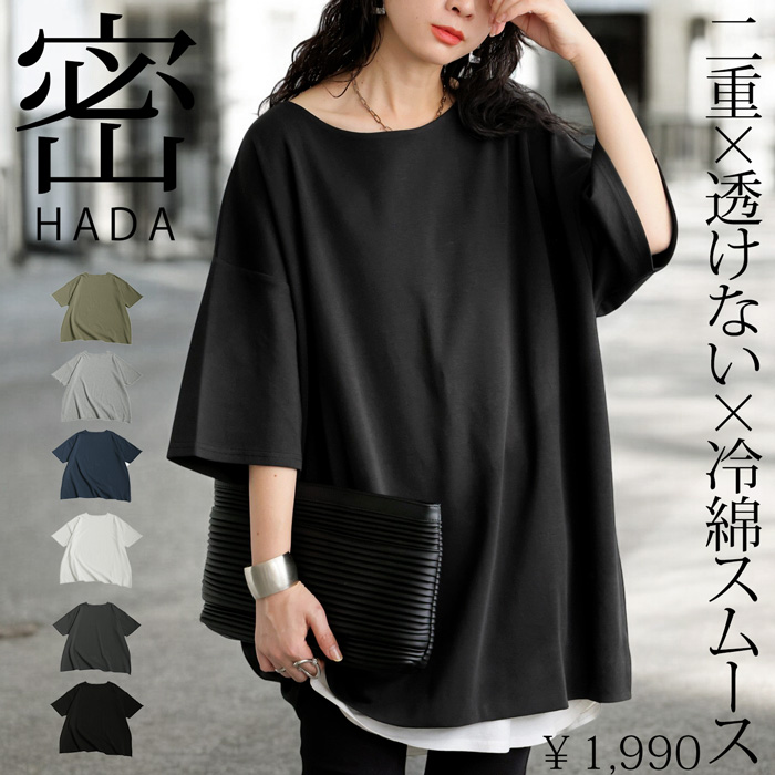 【検索ワード】密肌 Tシャツ カットソー レディース トップス 無地 半袖 シンプル 丸首 クルーネック 綿100 綿 コットン 二重構造 ゆったり インナー 透けない 重ね着 レイヤード レイヤードインナー プルオーバー かぶり ドロップショルダー ダブルボディ 接触冷感 ひんやり 涼しい コンパクトスムース とろみ生地 定番 着回し 肌着いらず カラバリ豊富 オーバーサイズ ビッグシルエット カーキ ホワイト 白 ブラック 黒 杢グレー ダークグレー ネイビー 紺 サイズ展開 M L XL ユニセックス antiqua treecafe アンティカ ツリーカフェ 大人 おしゃれ 10代 20代 30代 40代 50代 60代 春 夏 お洒落 カジュアル かわいい かっこいい あんてぃか