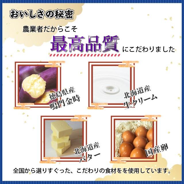 厳選した、良質な徳島県産鳴門金時、北海道産生クリームとバター、国産卵を使用しています。