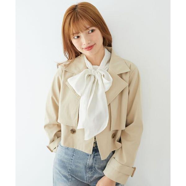 キーワード:トレンチコート コート レディース ショート丈 無地 オフィスカジュアル デート ピクニック レジャー フェス ライブ フェミニン 春 大人カジュアル