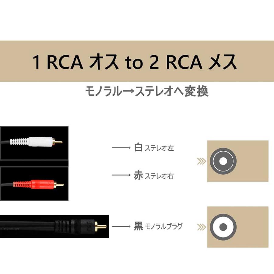 1RCAオスー2RCAメス変換ケーブルです。モノラル音声信号をステレオ左・右に転換できます。