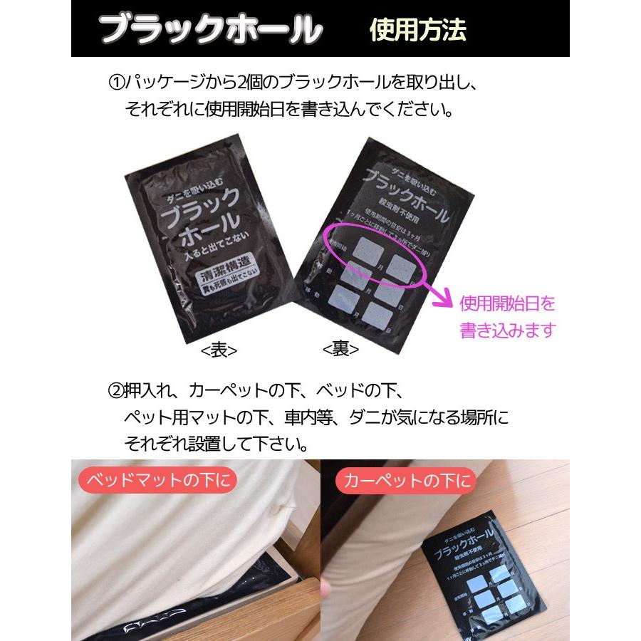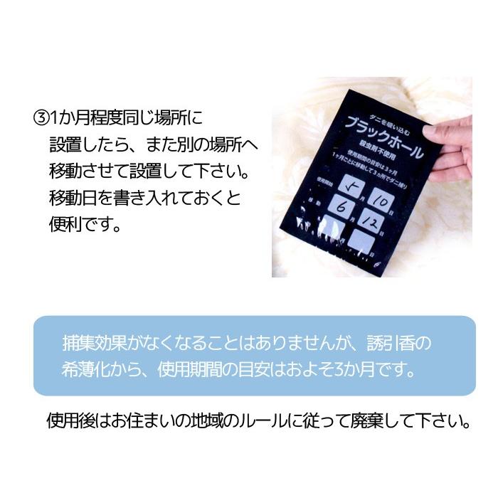 置くだけで、ダニが小さい穴から袋の中へ吸い込まれていき、そのまま外に出ることなく
