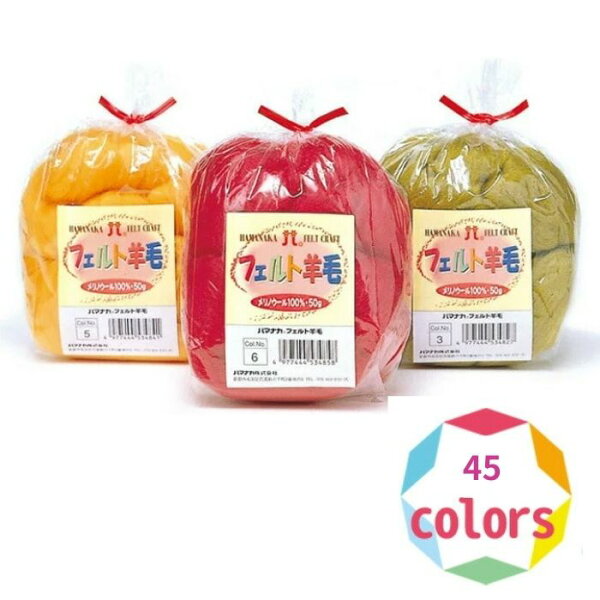 羊毛フェルトの材料の中でもスタンダードなメリノウール100%。メリノウールは柔らかく細い繊維で光沢もあり、仕上がりが滑らかできれいです。