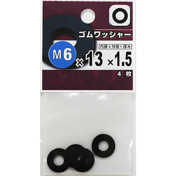 【メール便可】八幡ねじ ゴムワッシャー M6×13×1.5 4枚入