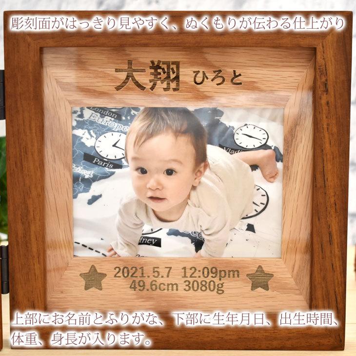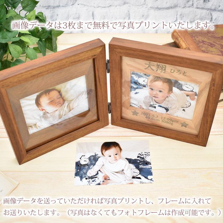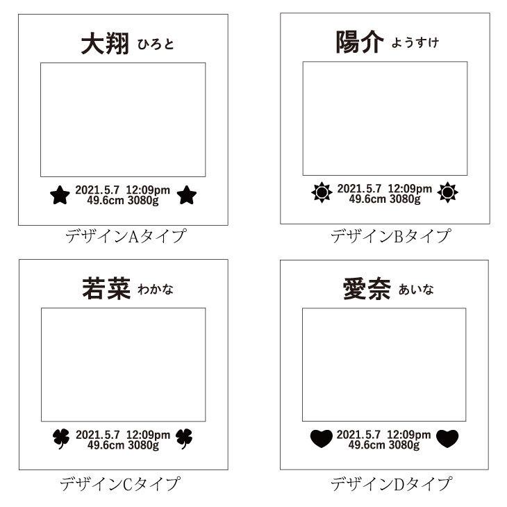 出産祝いや内祝いプレゼントに喜ばれる「名入れ刻印フォトフレーム」です♪「お名前」はもちろん、「お誕生日」の他、「出生時間」や「出生体重」も入れることができます。(お名前のみでも制作可能です。)また、お写真は3枚までL版で写真プリントが可能です。この名入れ刻印フォトフレームを使って、両家のご両親にお孫さんの写真をプレゼントするのもおススメです♪セミオーダーで作る一点ものの記念フォトフレームは世界でたった一つだけの贈り物!喜ばれること間違いなし、です♪