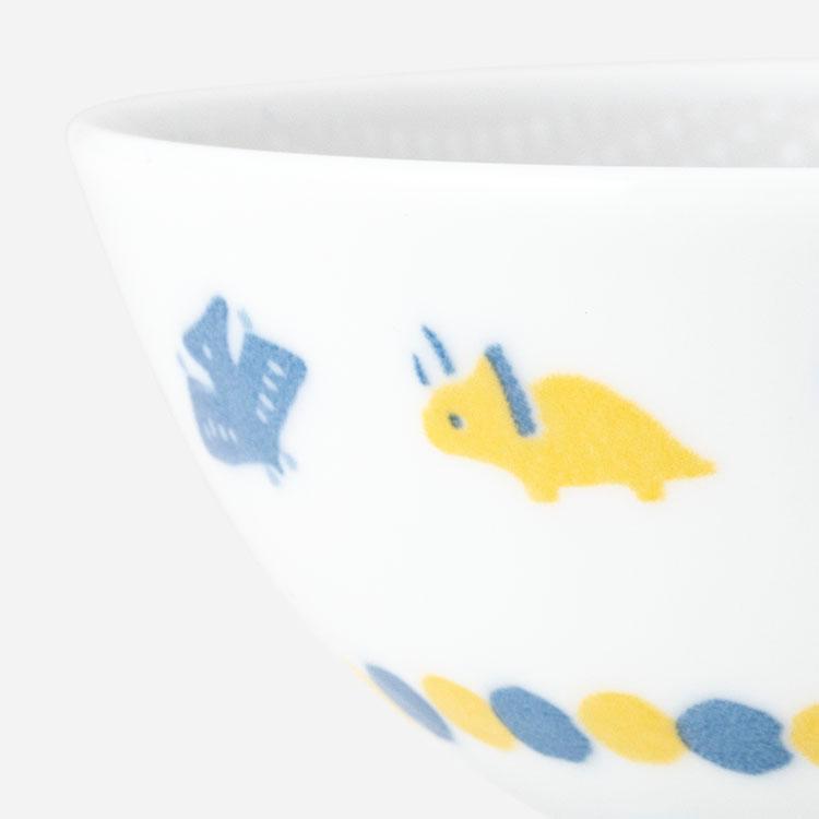 お食事の時間が楽しくなるような、恐竜とチョウチョのモチーフが入っています。内側は、ご飯粒がくっつきにくい凹凸仕様で、お子様の一人食べの練習にも最適です。