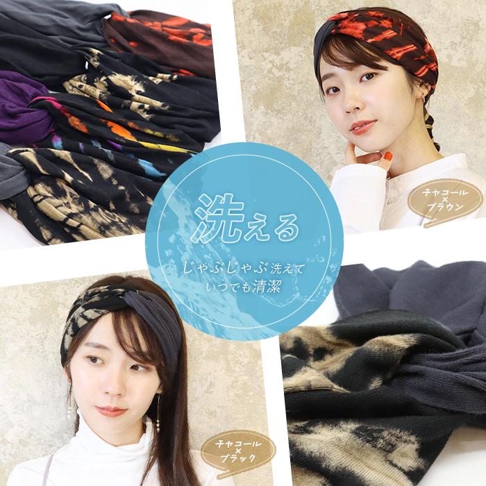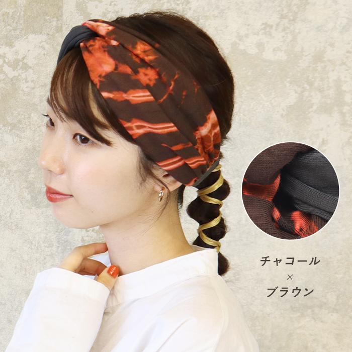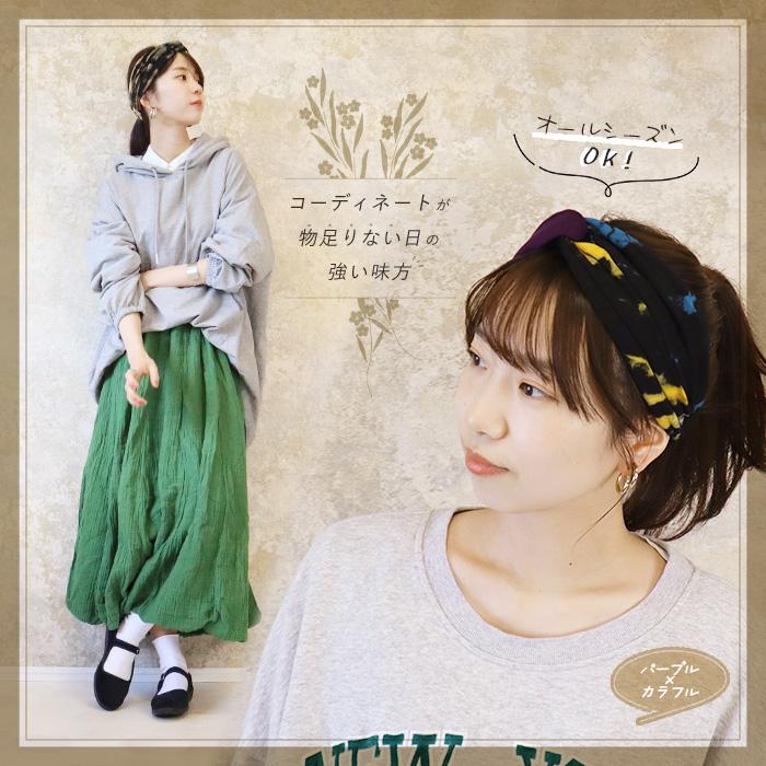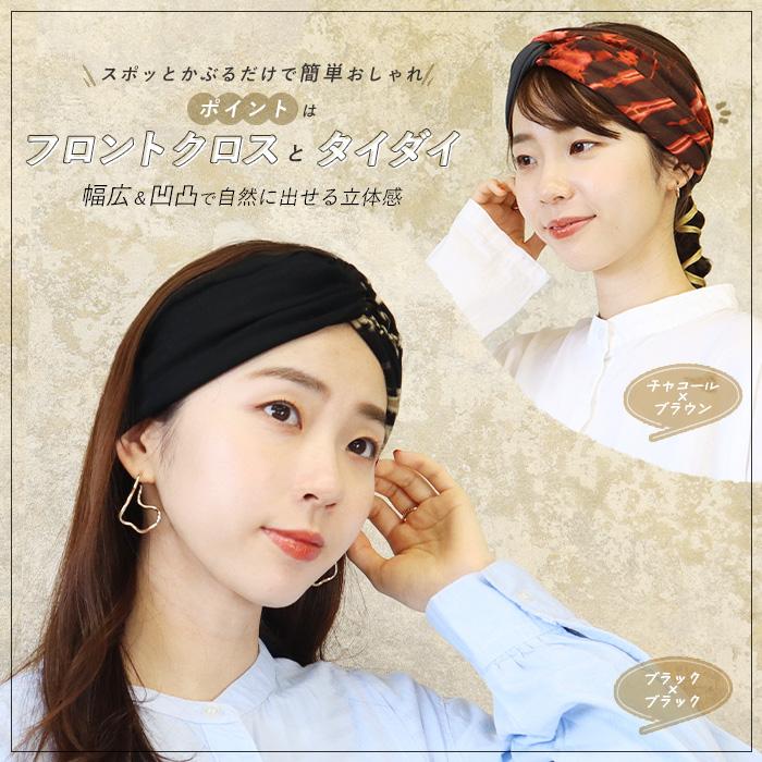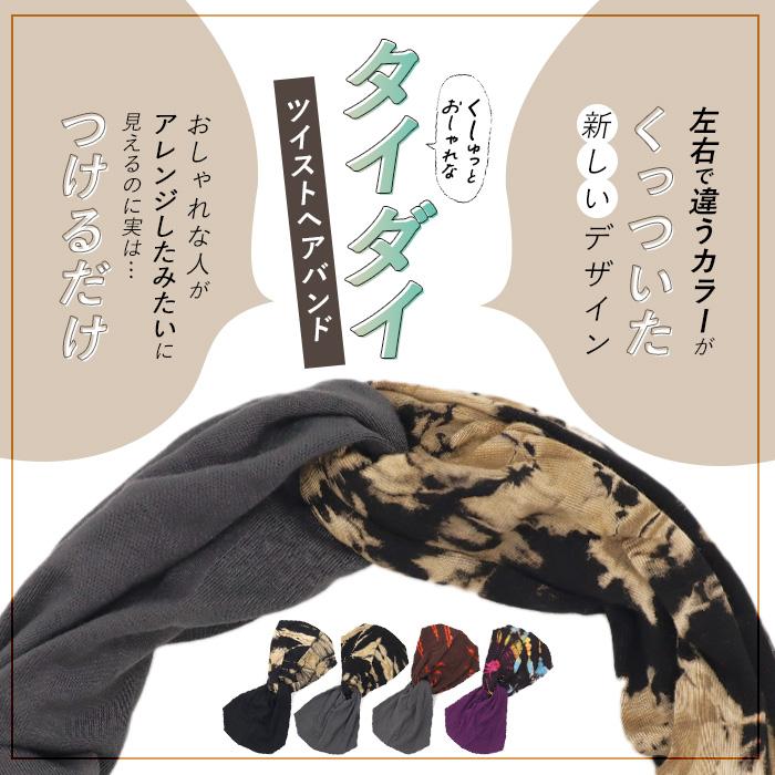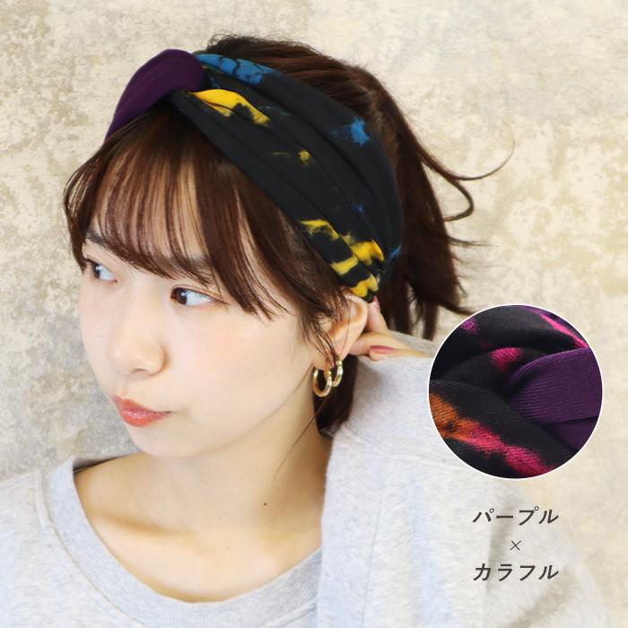 スポッとかぶるだけで簡単おしゃれ!左右で違うカラーがくっついた タイダイツイストヘアバンド【プレーン×タイダイ】です。たっぷりの生地&凸凹で自然にできる立体感が◎幅広ゴムとぐーんと伸びる伸縮性で締め付けにくく、優しい着け心地です。