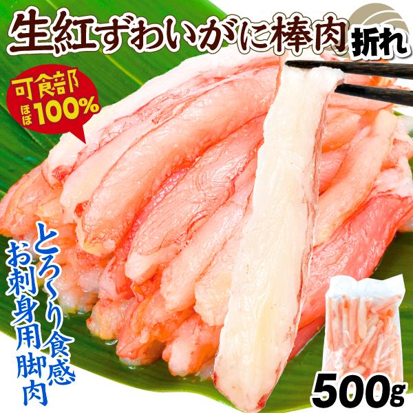 ●商品情報:紅ずわいがにの深い甘みが楽しめる希少な生食用脚肉を、折れ・割れのある訳あり棒肉を集めて大特価で。そのまま解凍するだけで刺身は絶品!かに雑炊、パスタなどのお料理にも。●内容量:1袋500g入り●原料原産地:北海道●加工地:千葉県●特定原材料:かに●賞味期間:1年(冷凍)●配送温度:冷凍便●備考:-●送料:送料グループ【85S02】の商品内でご注文数量に関わらず1回のお届けにつき、送料1100円(北海道・沖縄:発送不可)