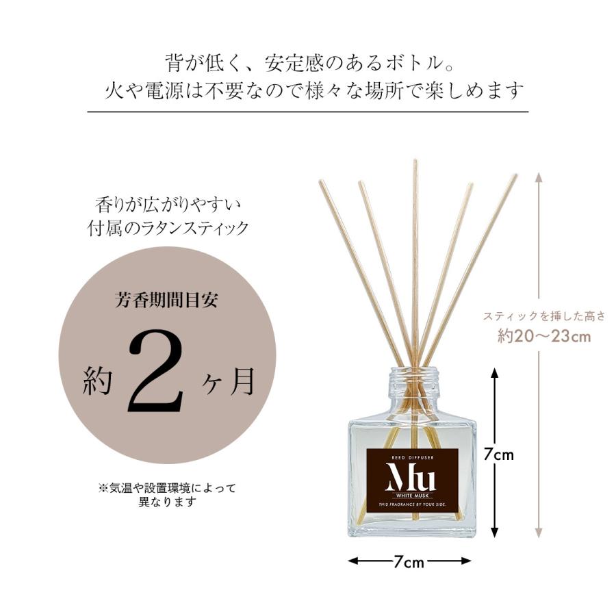 手軽に香りを楽しむことができる大容量のルームフレグランスです。付属のリードスティックを挿してお使いください。香り持続期間は約2ヶ月です。気温や設置環境によってことなります。