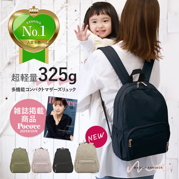 【超軽量325g★LINEクーポンで300円OFF】 マザーズバッグ リュック 軽量 大容量 軽い マザーズリュック おしゃれ 小さめ 洗える レディース ママバッグ ママ ナイロン 撥水 バッグ 丸洗い 日帰り ブラック 保育園 幼稚園 マリメッコ プレゼント 最強配送