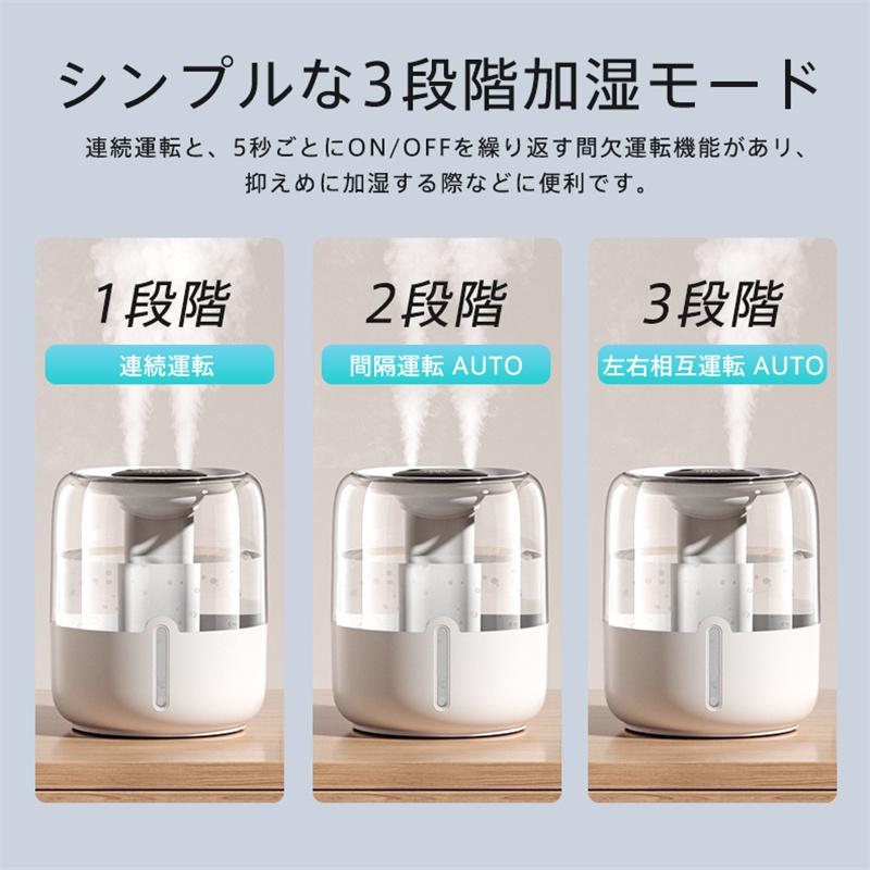 加湿能力:3段階(連続運転、間隔運転、相互間隔運転)