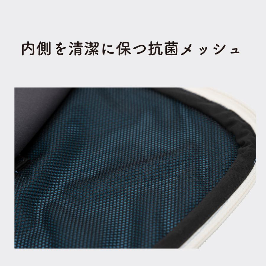 ベッド横にかけたり、肩掛けベルトを伸ばして持ち出してご利用いただけます。内側には尿臭を消臭する旭化成「ロイカCF」と日本製の抗菌メッシュを使用し、高い消臭効果と抗菌効果により、清潔感が持続します。