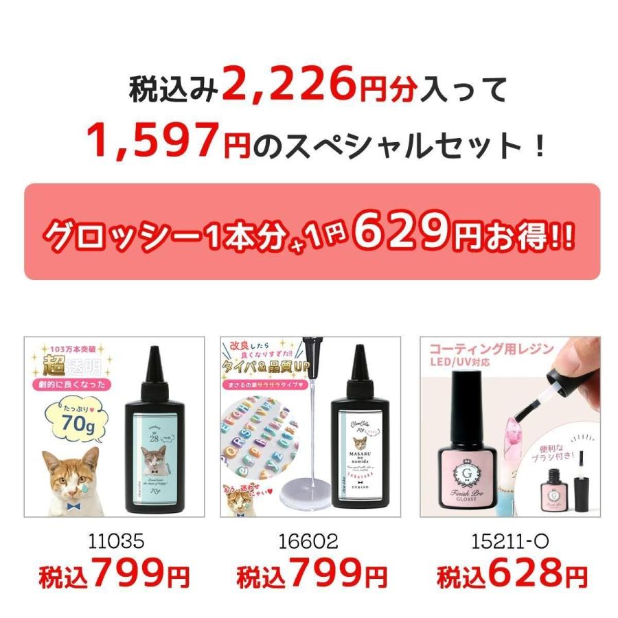 ■フィニッシュプログロッシーがオマケ♪お試しセット レジン液セット UV-LEDレジン液 まさるの涙 サラサラタイプ コーティングレジン液 GreenOceanオリジナル♪