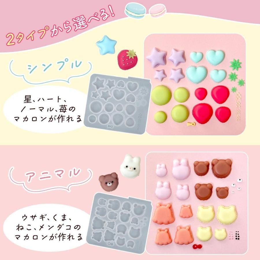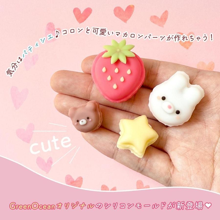 シリコン型・モールド ミニマカロン シリコンモールド レジン型 ミニチュアスイーツ 猫 うさぎ クマ めんだこ UVレジン GreenOceanオリジナル♪ 選べる2種