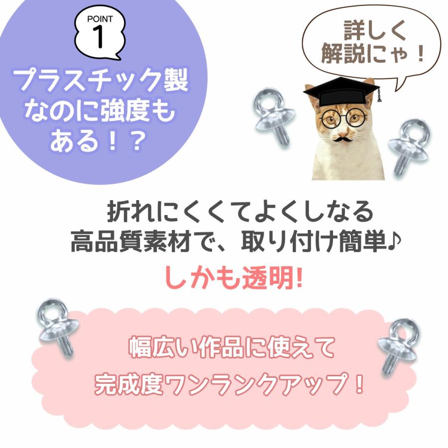 基本パーツ 鬼作家用 爆盛パック プラスチックミニヒートン 100個セット 9×4mm 透明 クリア 大容量 業務用 基礎 金具 アクセサリー パーツ UVレジン クラフト