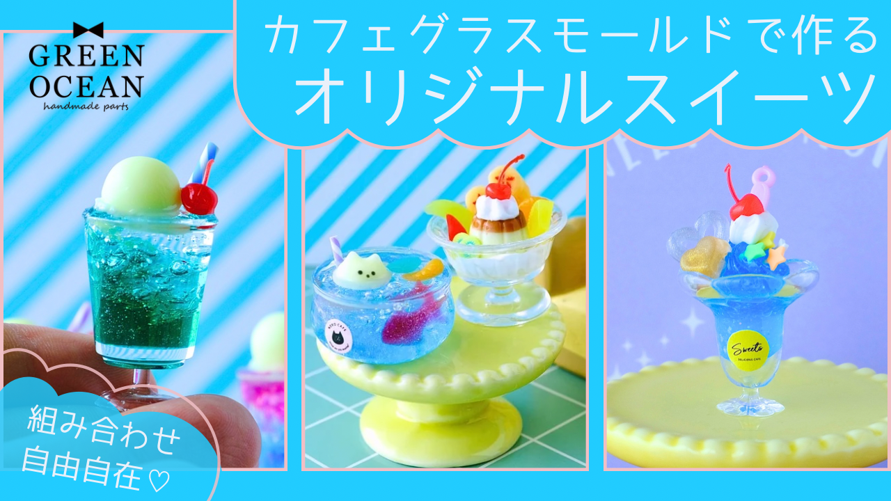 シリコン型・モールド ミニチュアカフェグラス シリコンモールド レジン型 セット スイーツ 立体 3d UVレジン LED クラフト GreenOceanオリジナル♪ 選べる3種