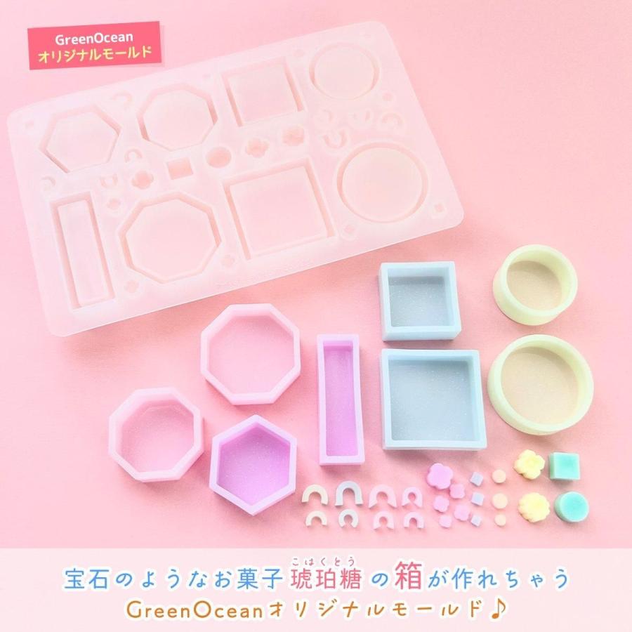 シリコン型・モールド 琥珀糖の箱 シリコンモールド レジン型 セット ボックス パッケージ ケース カン付き シェイカー UVレジン GreenOceanオリジナル♪