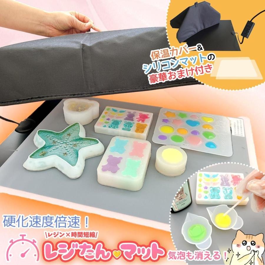 ★期間限定価格〜6/16 AM10:00 レジン用品 マット&カバー付♪ レジたんマット 約A3サイズ レジン 時短 ワイド 作業マット UVレジン液ヒーター 保温 気泡抜き