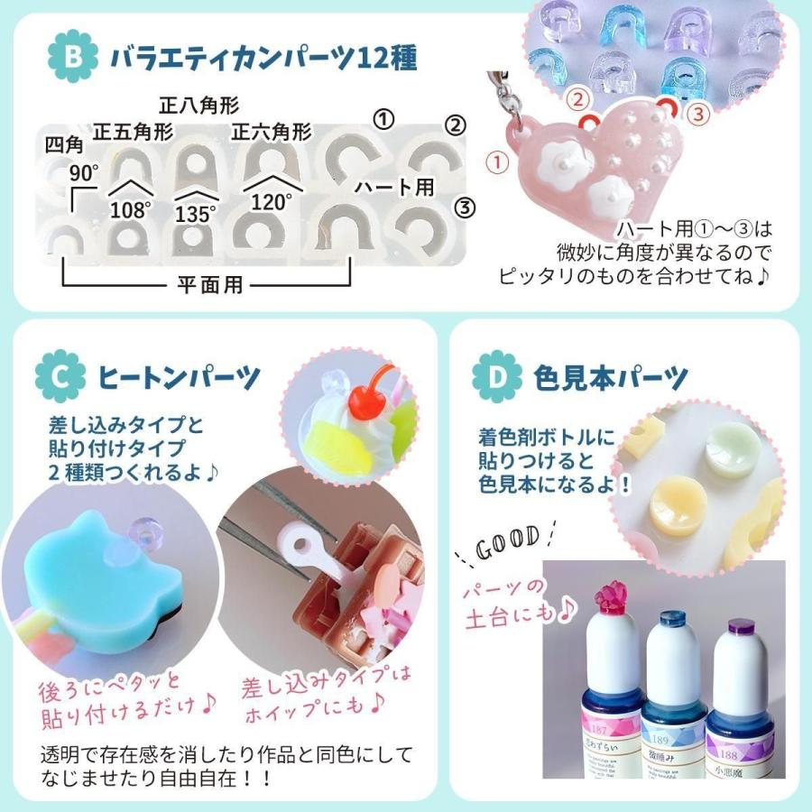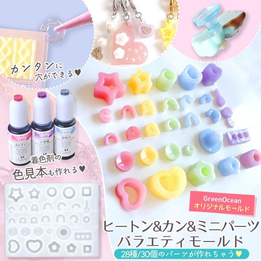 シリコン型・モールド ヒートン カン ミニパーツ シリコンモールド レジン型 セット パーツ 色見本 金具 透明 キーホルダー UVレジン GreenOceanオリジナル♪