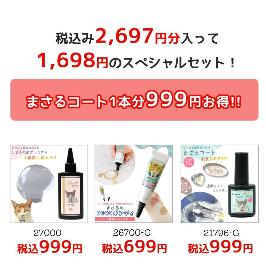 ■税込999円のまさるコートがオマケ♪レジン液 プレミアムまさるの涙 まさるのDECOボンディ お試しセット 接着剤 大容量 UVレジン クリア GreenOceanオリジナル