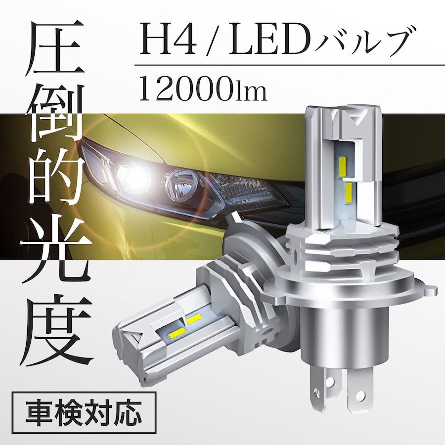 商品名:h4 ledバルブ 車検対応 LEDヘッドライト Hi/Lo切替 DC12V 6000K ホワイト ファンレス 2本セット