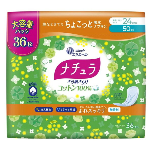 大王製紙 ナチュラ さら肌さらり コットン100% ちょこっと吸水ナプキン24cm 50cc 36枚