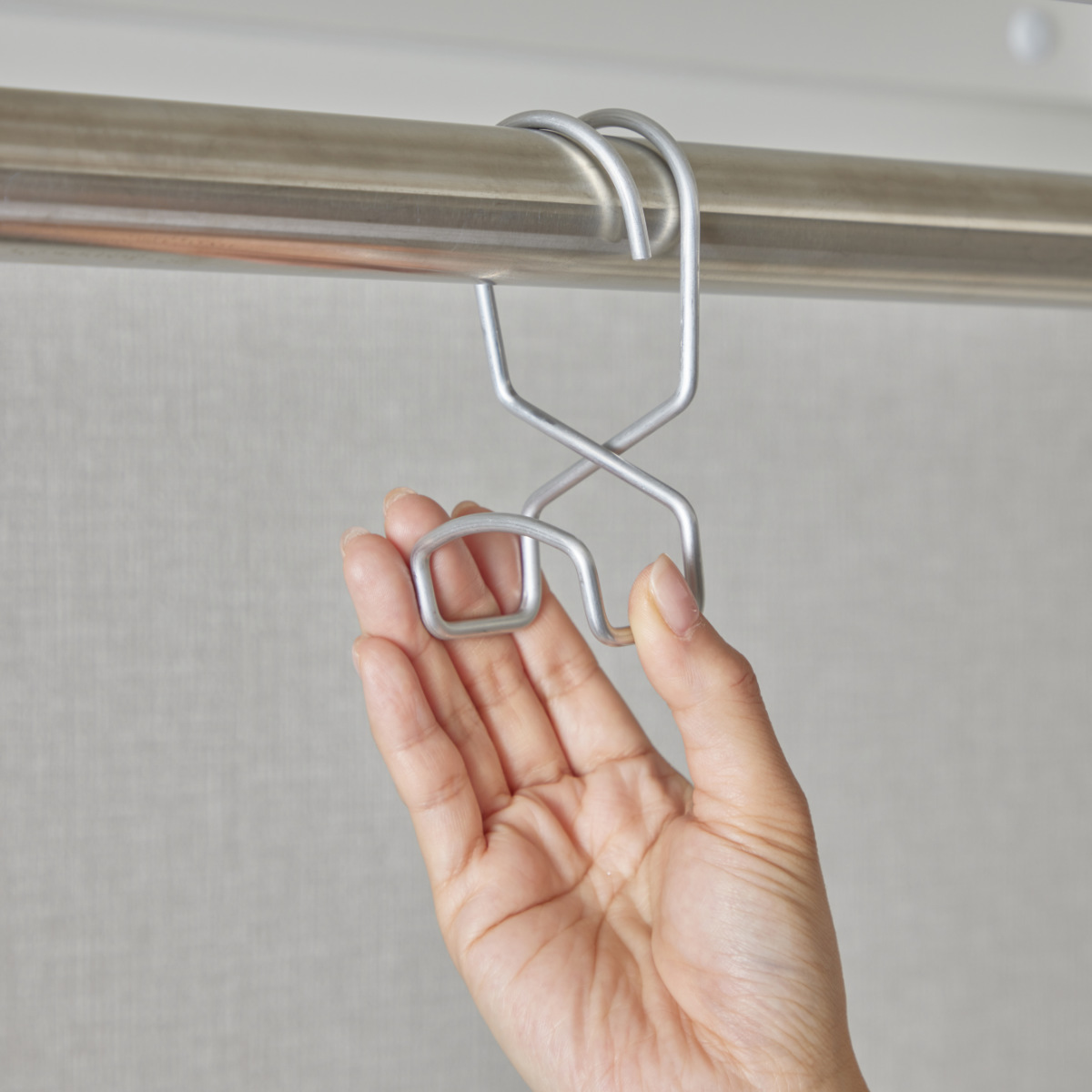 ●ハンガーパイプを挟み込むだけで簡単に設置できます。