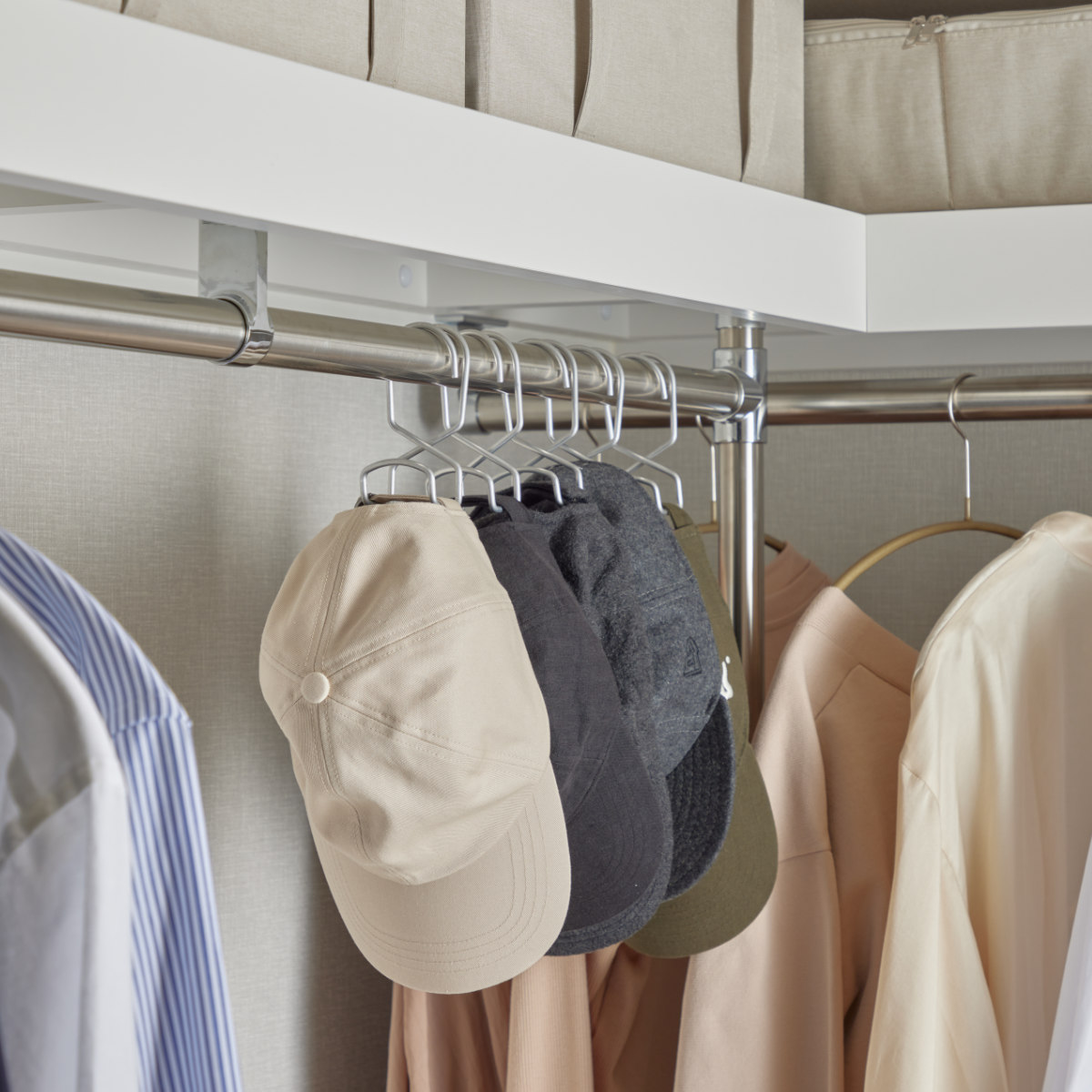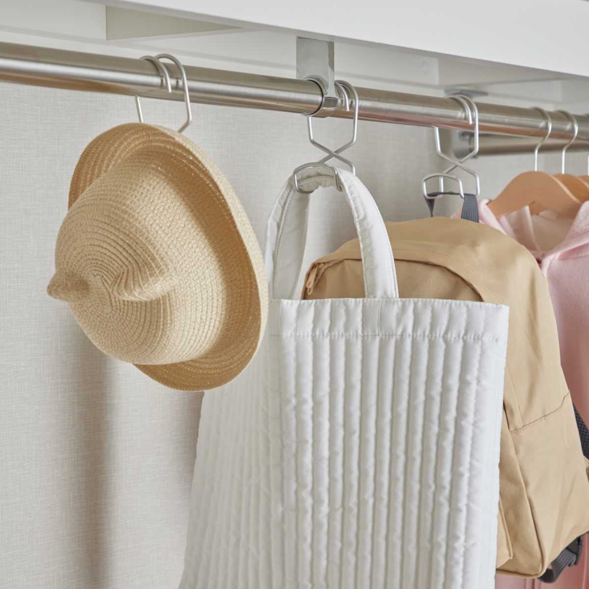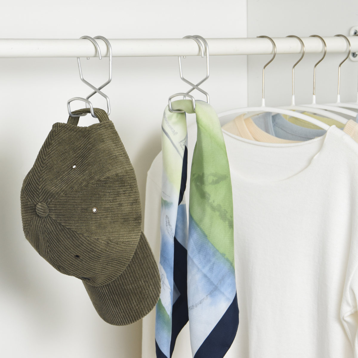 ●かばんや帽子をハンガーと同じ向きに掛けられます。