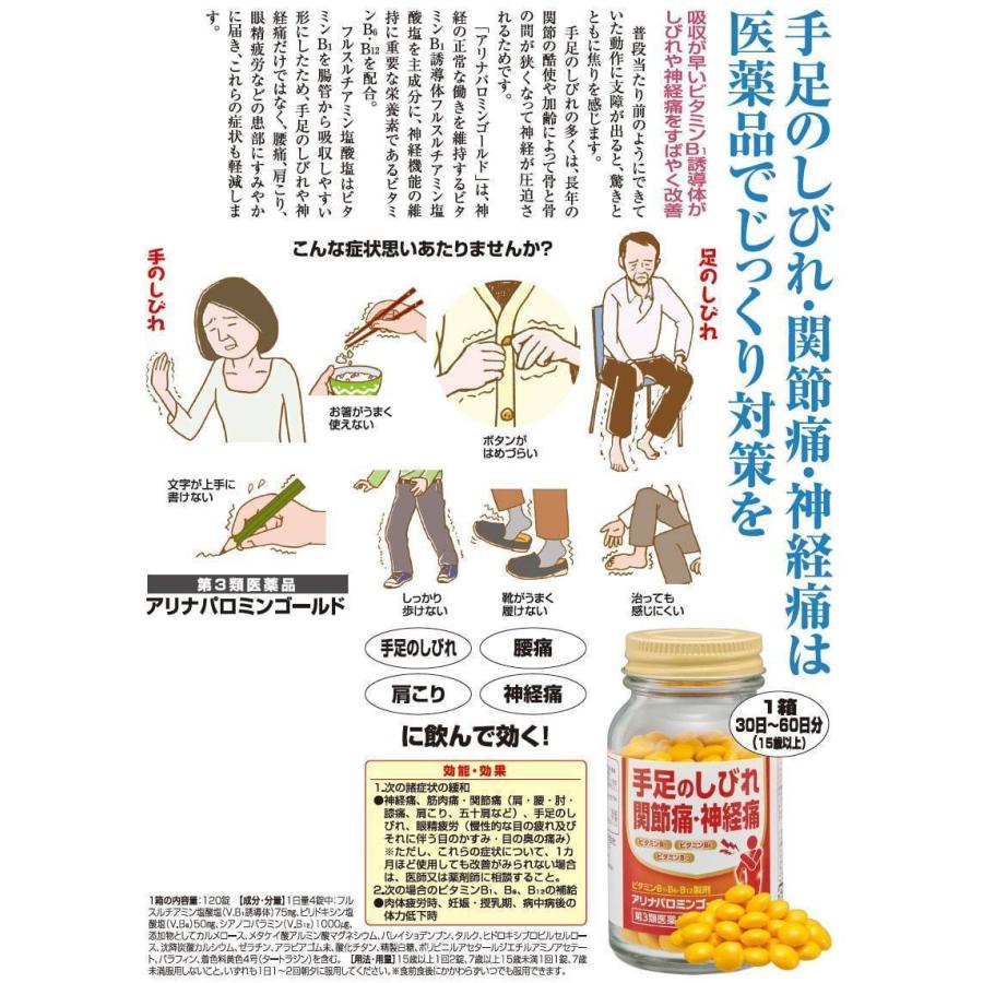 アリナパロミンゴールドは、神経の正常な働きを維持するフルスルチアミンを主成分に、ビタミンB6・B12を配合。