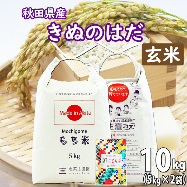秋田県産 農家直送 きぬのはだ もち米 玄米 10kg(5kg×2袋) 令和6年産 古代米お試し袋付き
