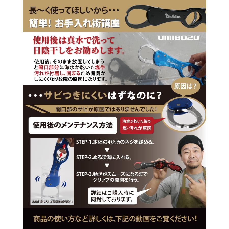・釣り好きの方たちの口コミから生まれたフィッシュグリップ。大人気のウミボウズフィッシュグリップの日本墨絵モデル。 重さは超軽量の195g。ピストル型で操作がしやすく持ち運びにも大変便利です。