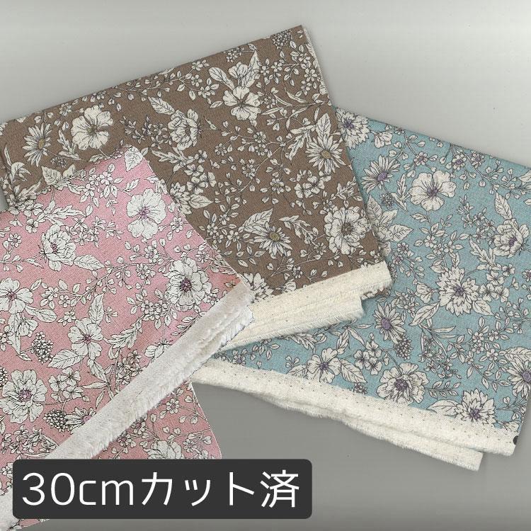 【カット済クロス】30cmハギレ ナチュラルフラワーガーデン*コットンリネンキャンバス[20L]