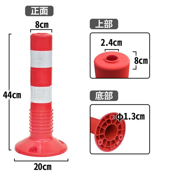 サイズ:(約)高さ:44cm台座:φ20cm(円周63cm)本体:φ8cm(円周26.5cm)ネジ穴:φ13mm(3か所)※アンカー、ボルトなど別途ご用意下さい。440mm 段差 道路誘導 柔軟性 柔軟 夜間 縁石 歩道 縁石 車庫注意喚起 通り抜け禁止 車止め 目印 視線誘導標 道路 駐車場 境界 防犯 送料無料