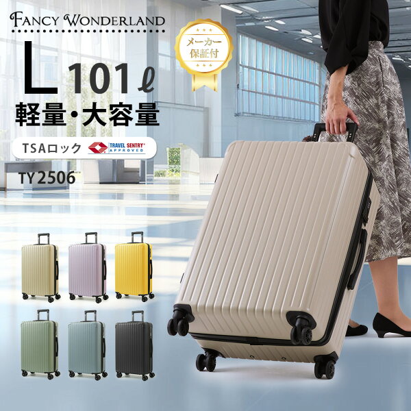 【P5倍+最大25%OFFクーポン配布中】スーツケース Lサイズ 軽量 大型 キャリーケース ハード 静音 ダブルキャスター TSAロック ファスナー 約7泊〜10泊用 大容量 シンプル おしゃれ 可愛い メンズ レディース 修学旅行 海外 国内 ビジネス 出張 TY2506