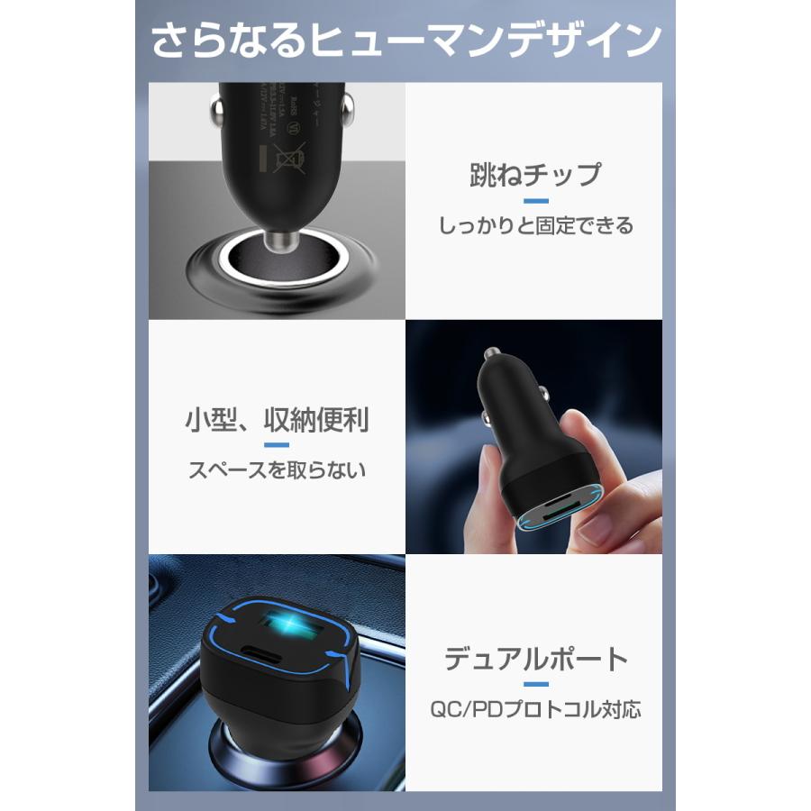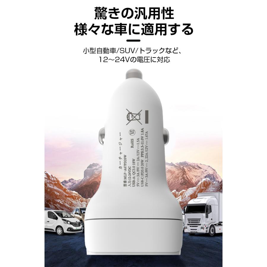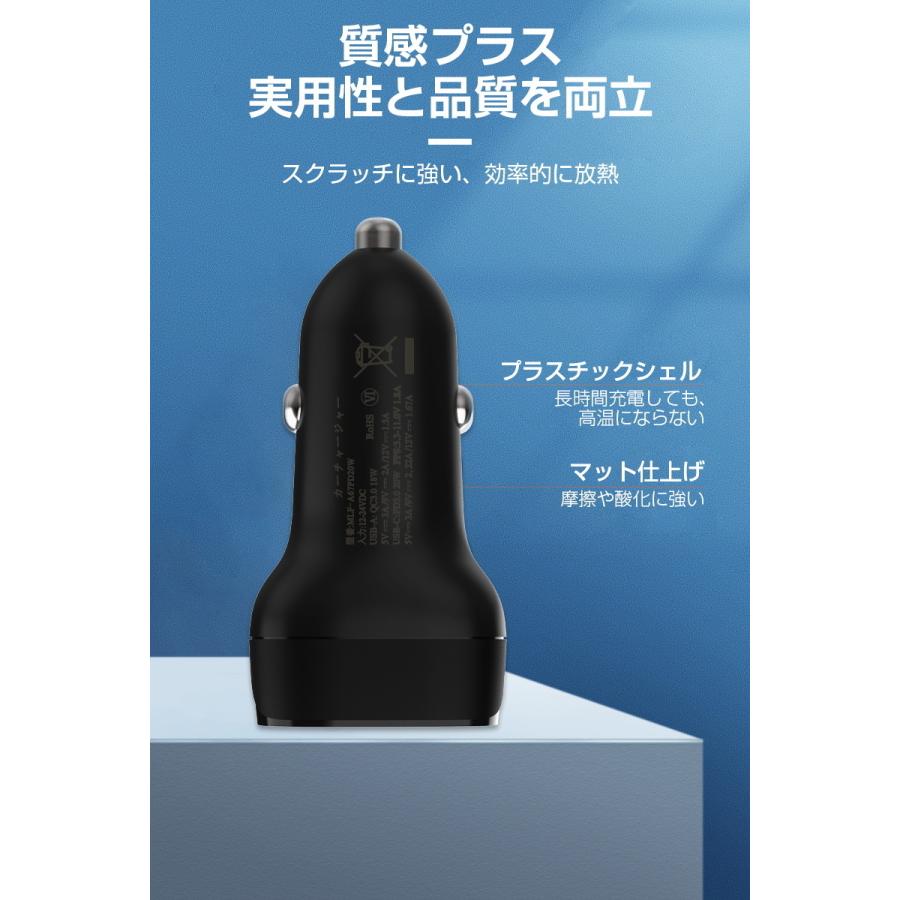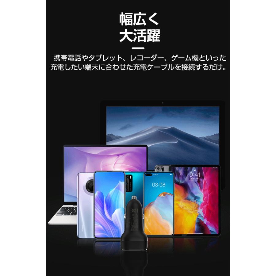 【簡単に利用できる】使い方も至って簡単で、カーチャージャーの先っぽをシガーソケット(12V/24V)に挿し込むだけ。悩む必要なく誰でも簡単に取り付けることが可能です。あとは、iPhoneやAndroidなどのスマホ・iPadなどのタブレット・AirPodsなどのワイヤレスイヤホン・IQOSなどの電子タバコといった充電したいガジェットに合わせた充電ケーブルを接続するだけ。