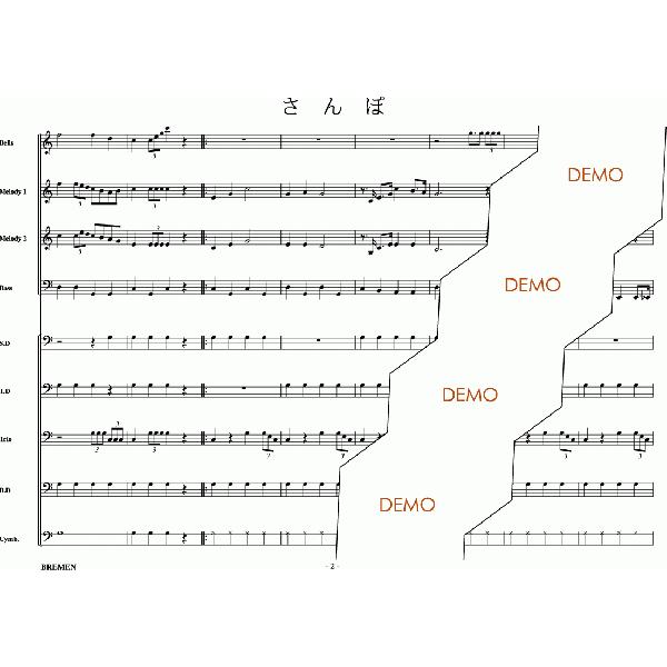 鼓隊用にアレンジされた楽譜です♪行進しやすいアレンジになっております☆主な使用楽器:グロッケン(鉄琴)、マーチングキーボード、ベース(低音楽器)、スネアドラム(小太鼓)、テナードラム(中太鼓)、トリオタム(ツインタム)、バスドラム(大太鼓)、シンバル等出版社:ブレーメンJAN:4529737021264作曲:久石 譲編曲:吉川 浩司難易度:中級演奏時間:約2:45サイズ:A4ページ数:5パート譜:無し備考:映画「となりのトトロ」より