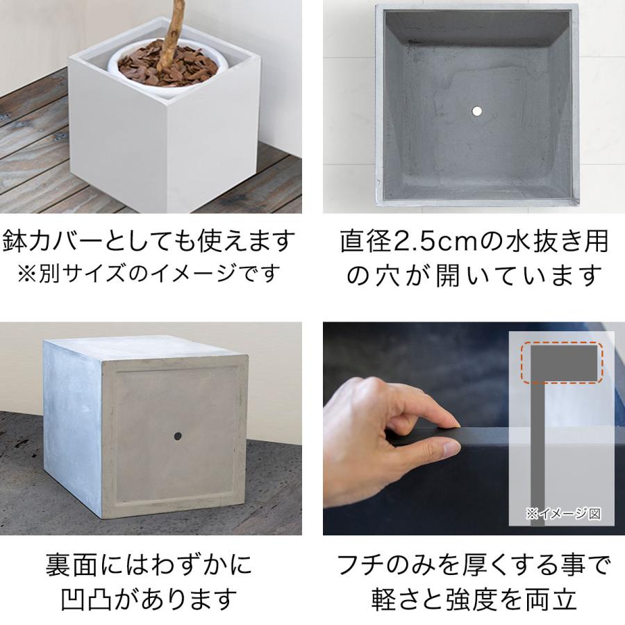 シンプルでモダンなデザインの四角形のプランターです。鉢カバーとして、また土を入れて植木鉢としても使えます。