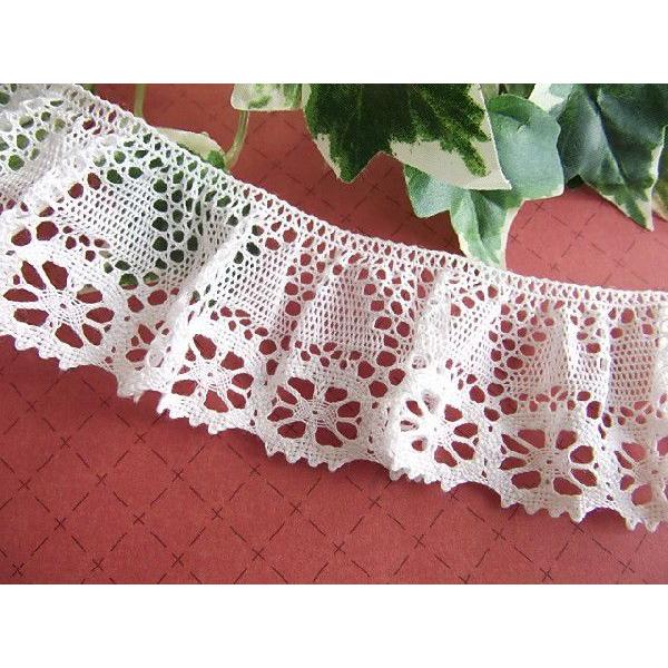 ストレッチの入ったカワイイフリルレースです☆とてもかわいいレースなので、洋服、小物や雑貨など用途も色々の当店オススメ商品です!【色】オフホワイト【素材】綿、ポリウレタン【厚み】普通 ●こちらの商品は5m単位での販売となります。5mの場合 1と入力15mの場合 3と入力